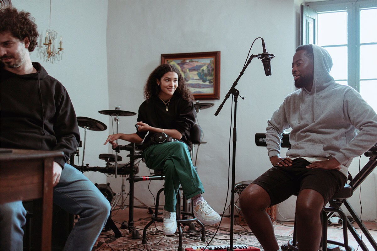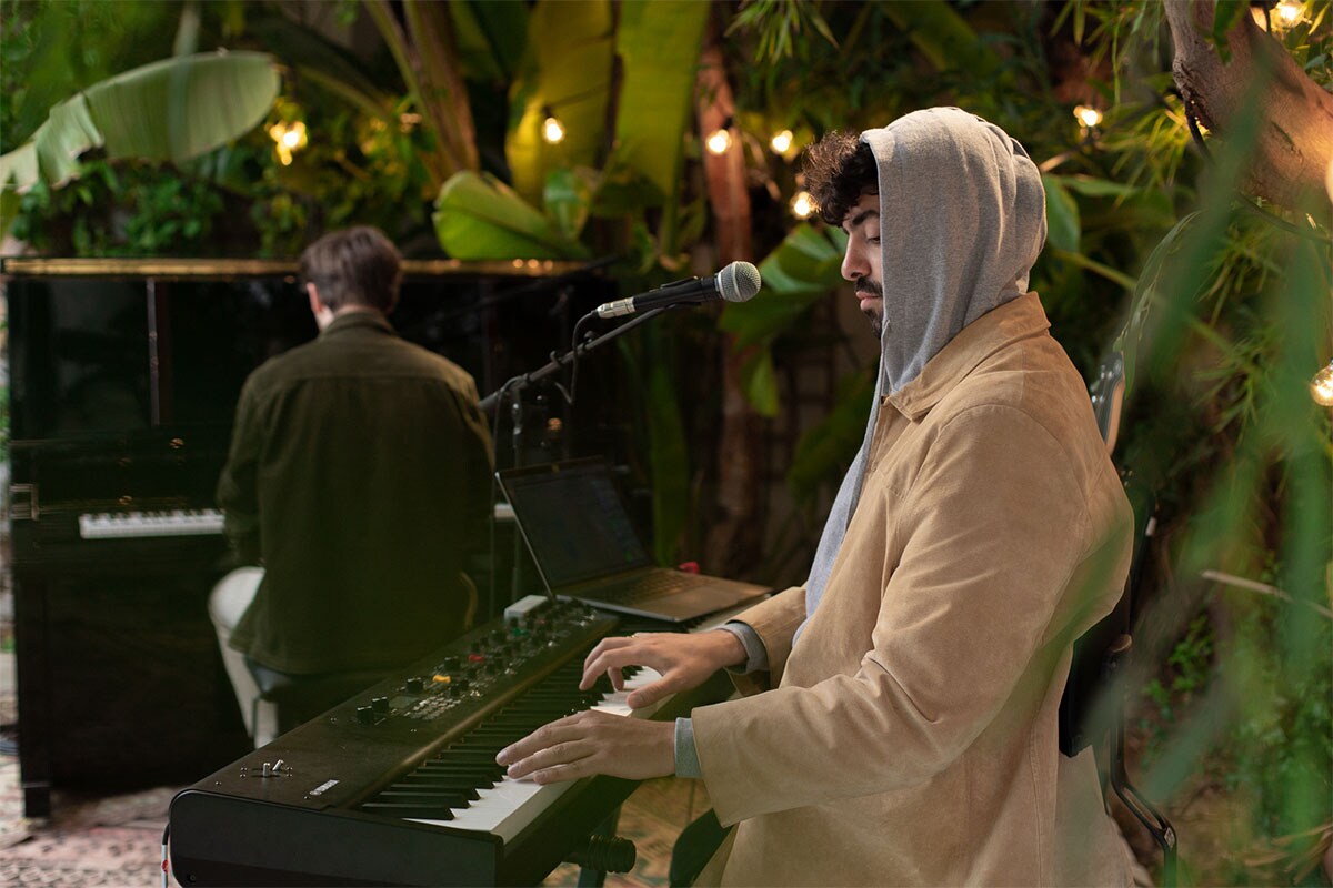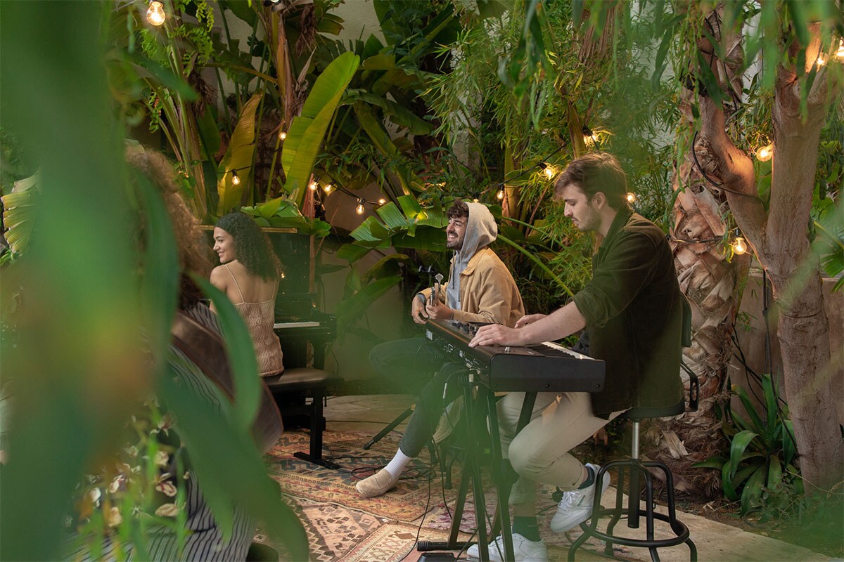 On the second day in the House of Talents, the artists get the chance to experiment with their tracks in the villa’s home studio. Producer Jesus supports them with refining song layers and exploring new instruments. Yamaha artist Miki Santamaria pays a visit to support the new talents in their creative process.