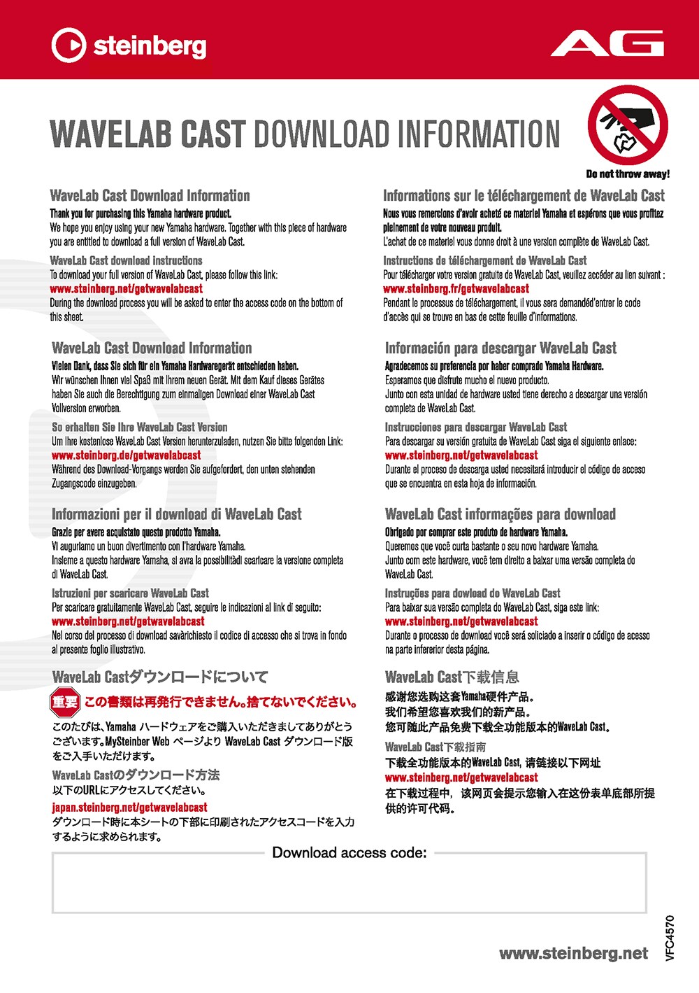 The download access code is printed on AG series Download Information sheet in the product box.