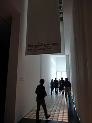 The exhibition comprises a film, 1395 Days Without Red, by Sarajevo-born artist Šejla Kamerić and his wife, Anri Sala. Uniquely designed to be shown in adjacent rooms, each version of the film features the same events and narrative, but shot from different camera angles.