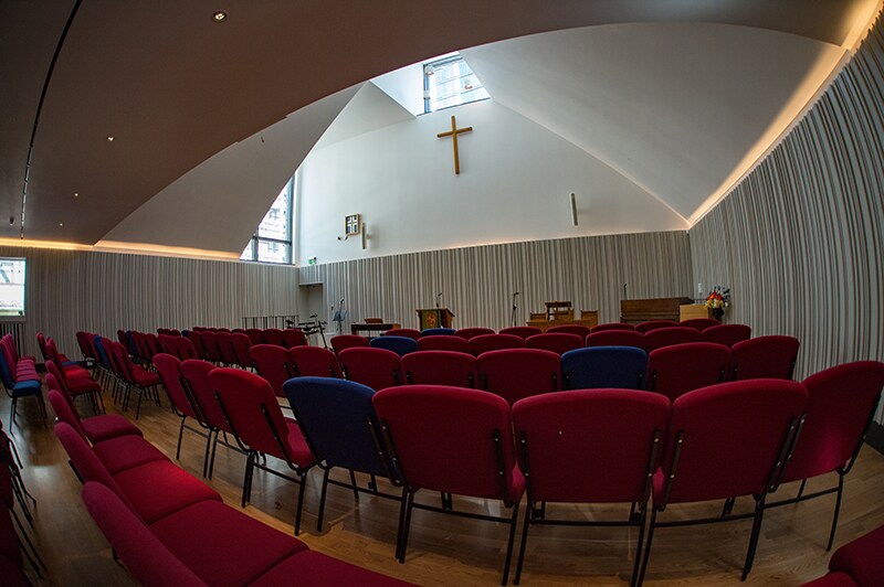 “We wanted to be able to model sharing as a Christian concept,” says The Rev. Dr Peter Stevenson, who has been the Minister at Crossway Church since 2009. “The new building not only has to serve as a place of worship for many different Christian denominations, but also to act as a true hub of the community, including as a help facility and drop-in centre.”