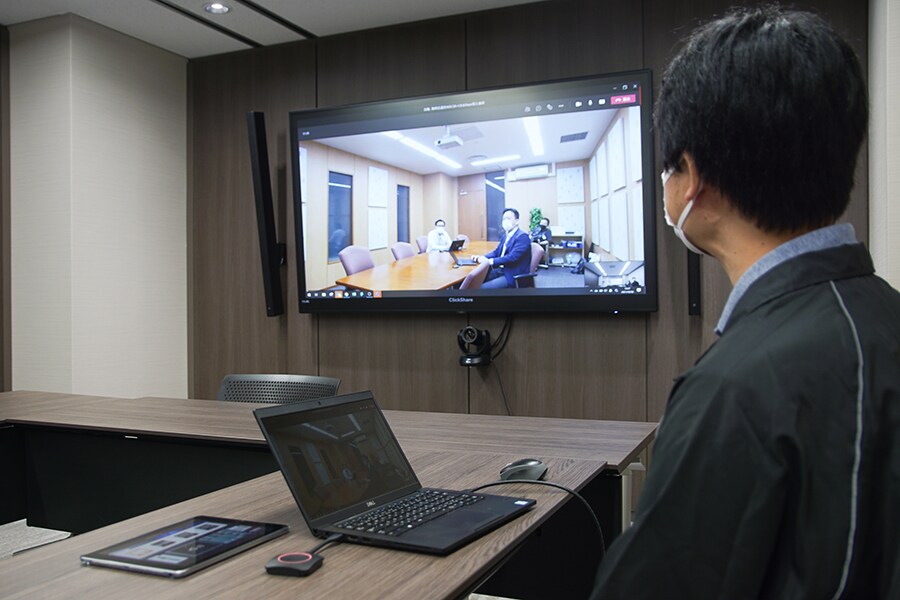 Toyoura: ADECIA and ClickShare have also been installed in the teleconference room at Yamaha’s Takanawa Office to which we are connected this time.