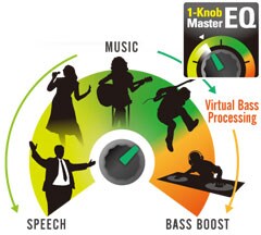 - 1-Knob Master EQ™ with virtual bass boost