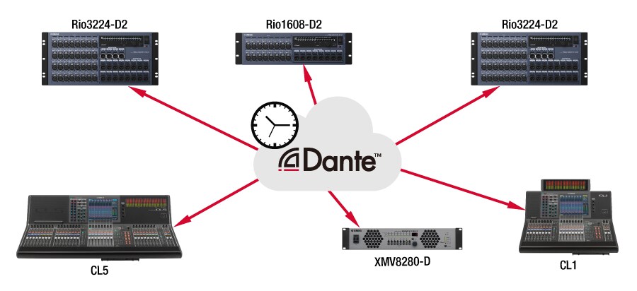 The entire Dante network behaves as a clock master, so there’s no need to think about master/slave relations within the network.