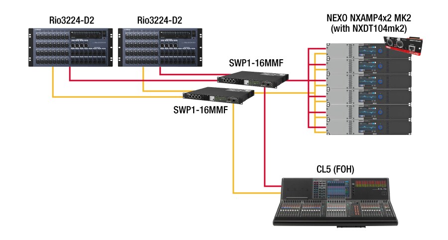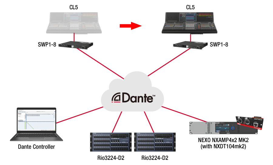In situations where signal interruptions due to cable faults or equipment malfunction must be avoided, Dante makes it easy to install redundant signal lines for backup.