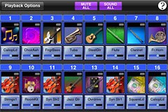 Build your ideal band for jamming by muting and mixing the instrument sounds you want to play along with.