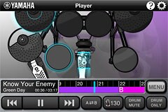 - New scrolling display (The timeline shows which drum you need to hit, with a cursor moving from right to left to indicate the timing.)- Skill test: Evaluate your drumming skills, with a three-level result for each drum.- You can connect to the Yamaha electronic drum DTX series (to use the skill test and for playback of song data from the drum kit)* An Apple Lightning to USB Camera Adapter/iPad Camera Connection Kit or Yamaha i-UX1 is required to connect the iOS device to Yamaha digital drum kit. See the "Related Products" of Yamaha website for details of supported instruments.-Optimized for the 4-inch Retina display on iPhone 5*Please note that with the update, the demo song is replaced, which reinitializes the demo song tempo, part muting settings and so on.