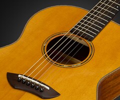 Yamaha CSF-TA TransAcoustic parlor guitars transport you to new creative spaces with immersive reverb and lush chorus effects, without needing an amp or other external gear. The compact CSF TransAcoustic features a Sitka spruce top, mahogany back and sides, and innovative scalloped bracing for a full, rich sound. Durable hard bag included.