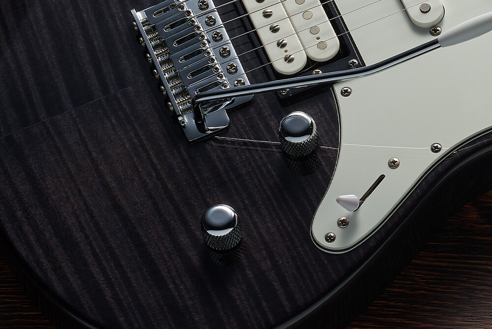 New Reflectone pickups created in collaboration with Rupert Neve Designs deliver clear and articulate tones with solid lows and sparkling highs, while the HSS pickup configuration combined with coil-splitting capabilities results in outstanding versatility.