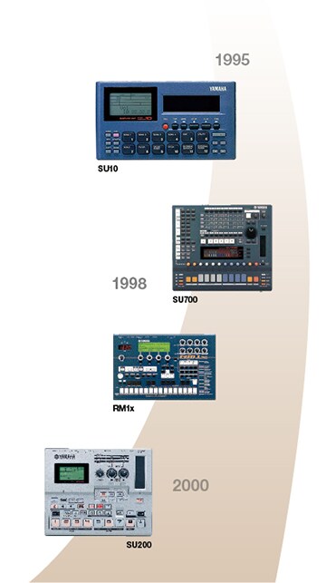 In 1995, Yamaha released the SU10—a sampling unit that was capable of sampling sounds at CD-level high quality, and as with the QY Series, had a compact design no larger than a VHS video cassette. In addition to sampling and playback, this instrument also supported DJ techniques such as scratching and crossfading thanks to a built-in ribbon controller. The CS1x Control Synthesizer released the following year had a similar color scheme, so from both design and functional perspectives, there was a strong sense that these two instruments were well suited for use together.