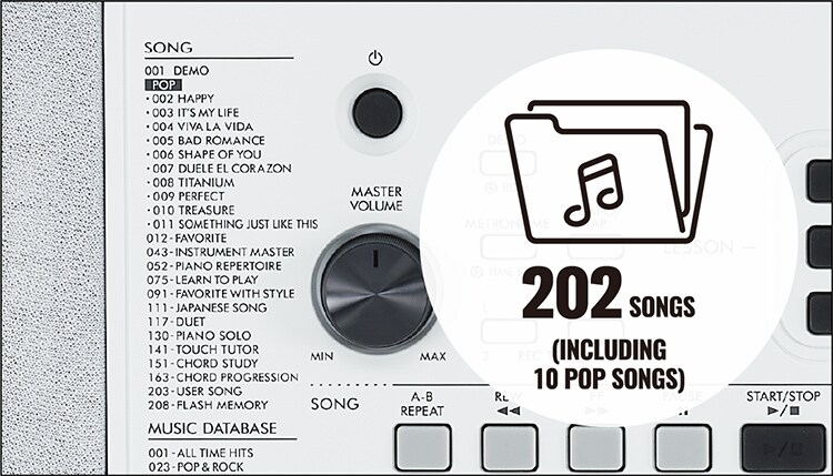 - A total of 202 built-in demo Songs, including popular and famous songs, as well as pieces for study