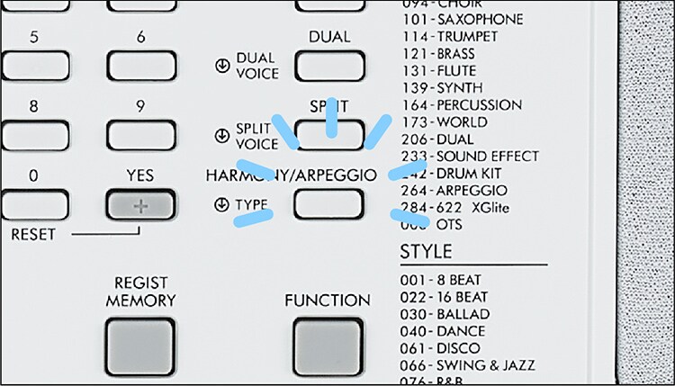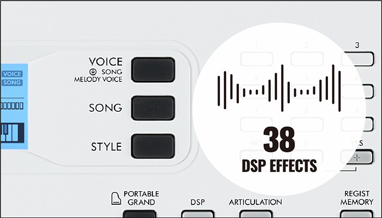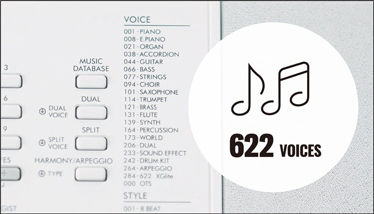 The EZ-300 features a total of 622 built-in instrument sounds (called Voices). Included with these are special “Live” Voices, which feature actual recorded samples from a grand piano, strings and brass. Just with this single keyboard you can play a huge variety of authentic musical instruments and perform with an amazingly full sound. In addition, there’s a Touch Response function that lets you expressively control the loudness by how strongly or softly you play the keys—helping you become familiar with the music as you express yourself, while having fun with the Auto Accompaniment functions and various effects.