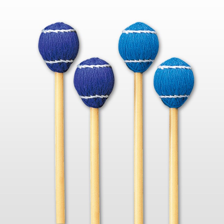 Mallets found in our professional models have been carefully designed with specific weights and special characteristics that allow the player to draw substantial tone from the instrument. The core on our two-tone models is wrapped with a special rubber porous with air, which results in an obvious change in tone when going between a hard-hitting forte and delicate piano. Every mallet in the series is carefully made by hand to guarantee the very highest level of quality. Yarn wound models are available with either rattan or birch shafts.