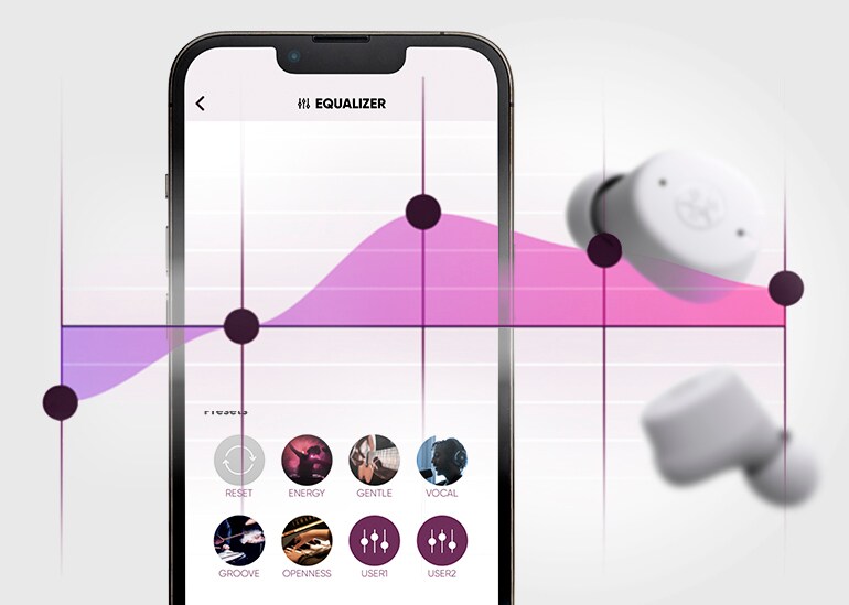 Fine tune the sound quality with the Headphone Control smartphone app. Instantly select the optimal sound quality with a single touch of one of the 5 presets.